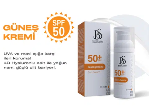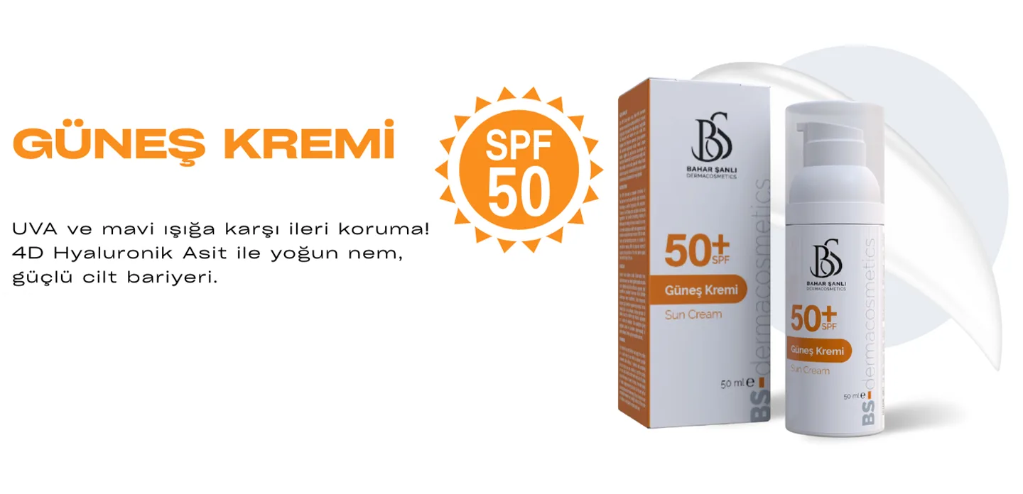 50+ SPF Güneş Kremi 50 ml50+ SPF Güneş Kremi uzun Süreli UVA korumanın yanı sıra mavi ışık koruma teknolojisi ile yüz ve boyun bölgesi için özel olarak formüle edilmiştir. İçeriğindeki 4D Hyaluronik asit karışımı ve uzun süreli nem sağlayan özel bileşenler sayesinde güneş ışınlarının cilt üzerinde oluşturacağı kuruluk hissini ortadan kaldırır. Sağlıklı cilt görünümünün korunmasını ve nemi içine hapsetmiş bir yüzey oluşmasını sağlar. Mat bitiş özelliği ve hızlı emilen yapısı ile makyaj öncesi kullanıma uygundur. Seramid içeriği ile güneşin zararlı ışınlarına karşı cilt bariyerini korumayı destekler.